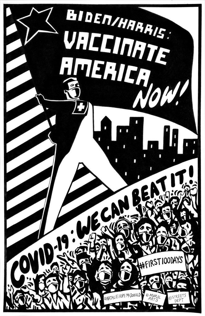 I had the honor to participate in the #First100Days project with nine other visual artists. The new art project was designed to engage the public around crucial policy issues ranging from COVID to global warming that can be addressed in the new Biden/Harris administration. Special thanks to Conrad Benner of the Streets Dept. and Mural Arts Project for including me.
