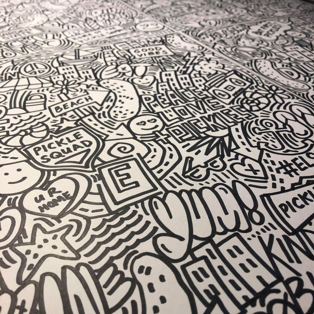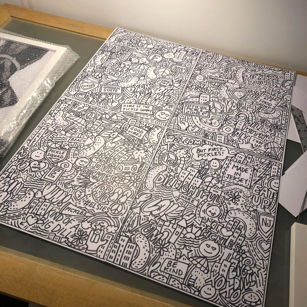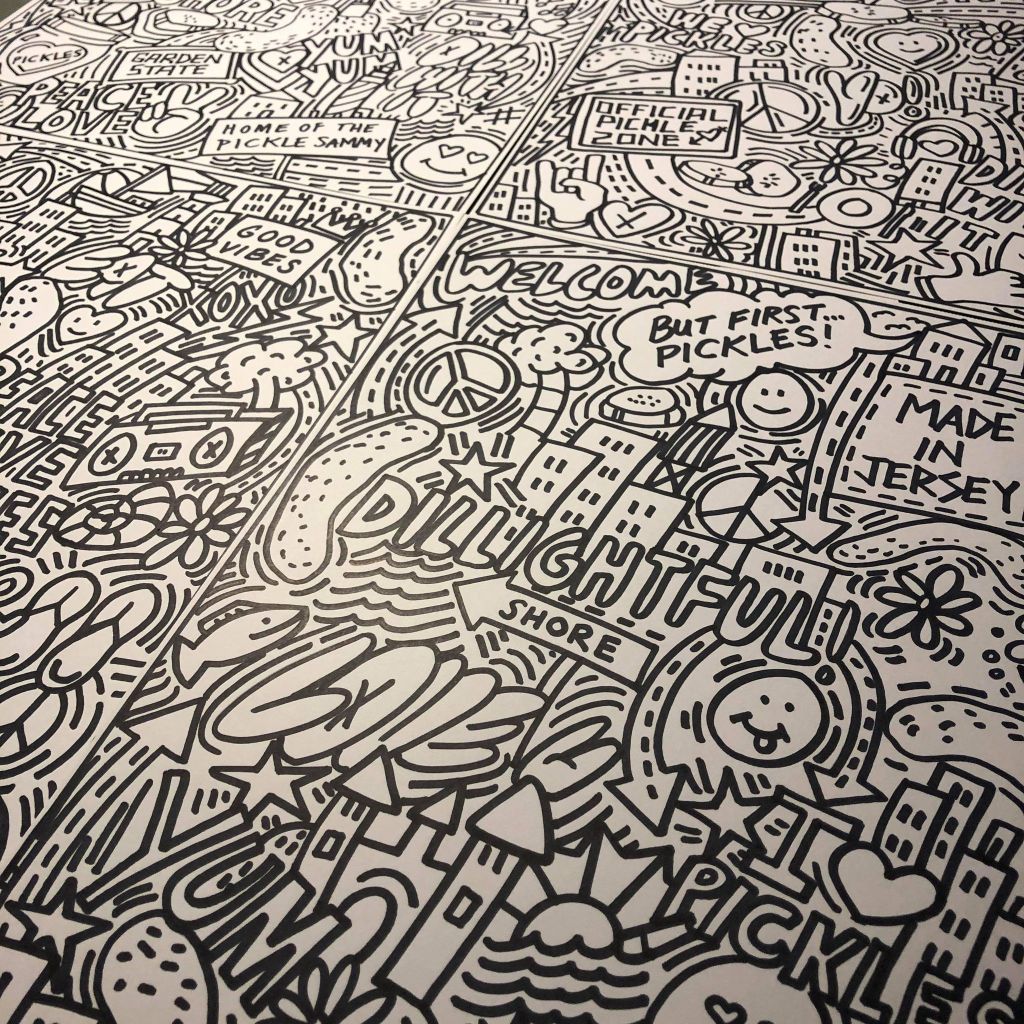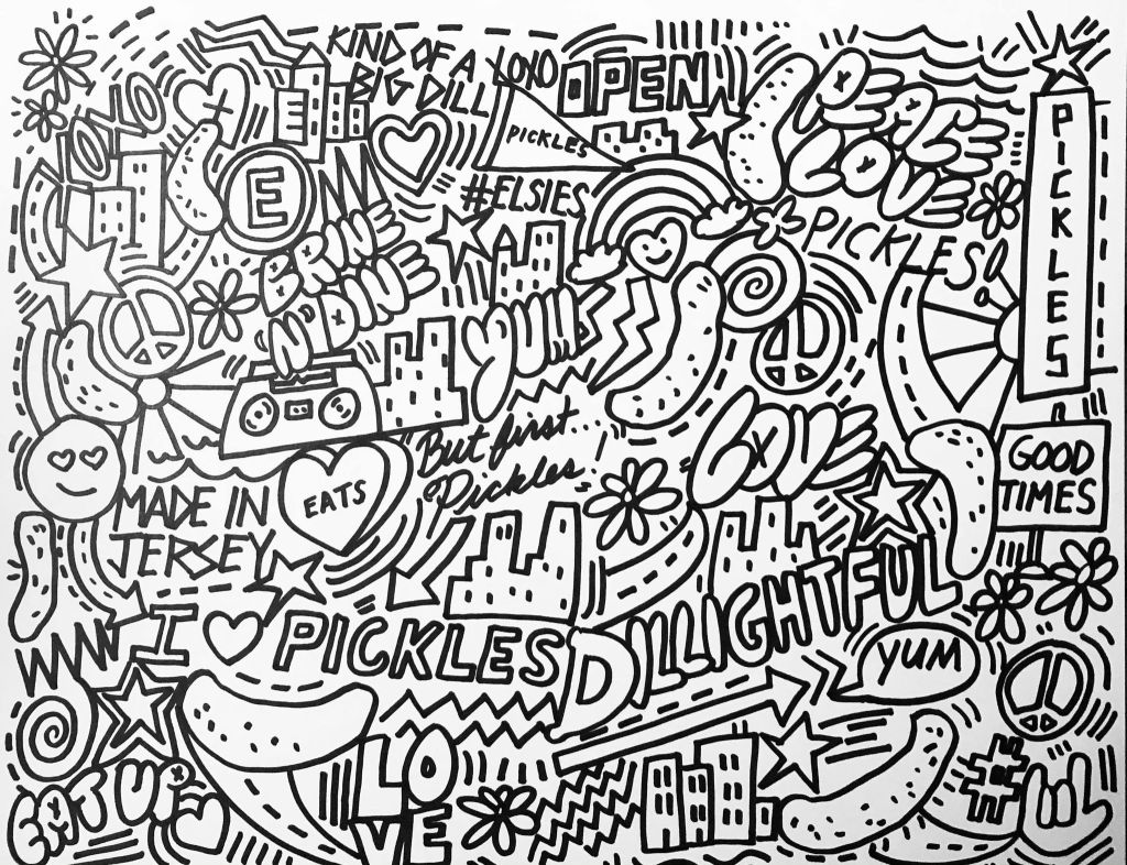 I created a series of custom illustrations for a restaurant that’s opening a few new franchises. The illustrations, which I drew by hand, are being reversed into white on black and enlarged to create eye-catching art on the front of the building at the New Jersey shore. I’m looking forward to creating more drawings and murals for these folks as their business expands. I initially painted a mural on the first location last year. Click here for more information on that project.
