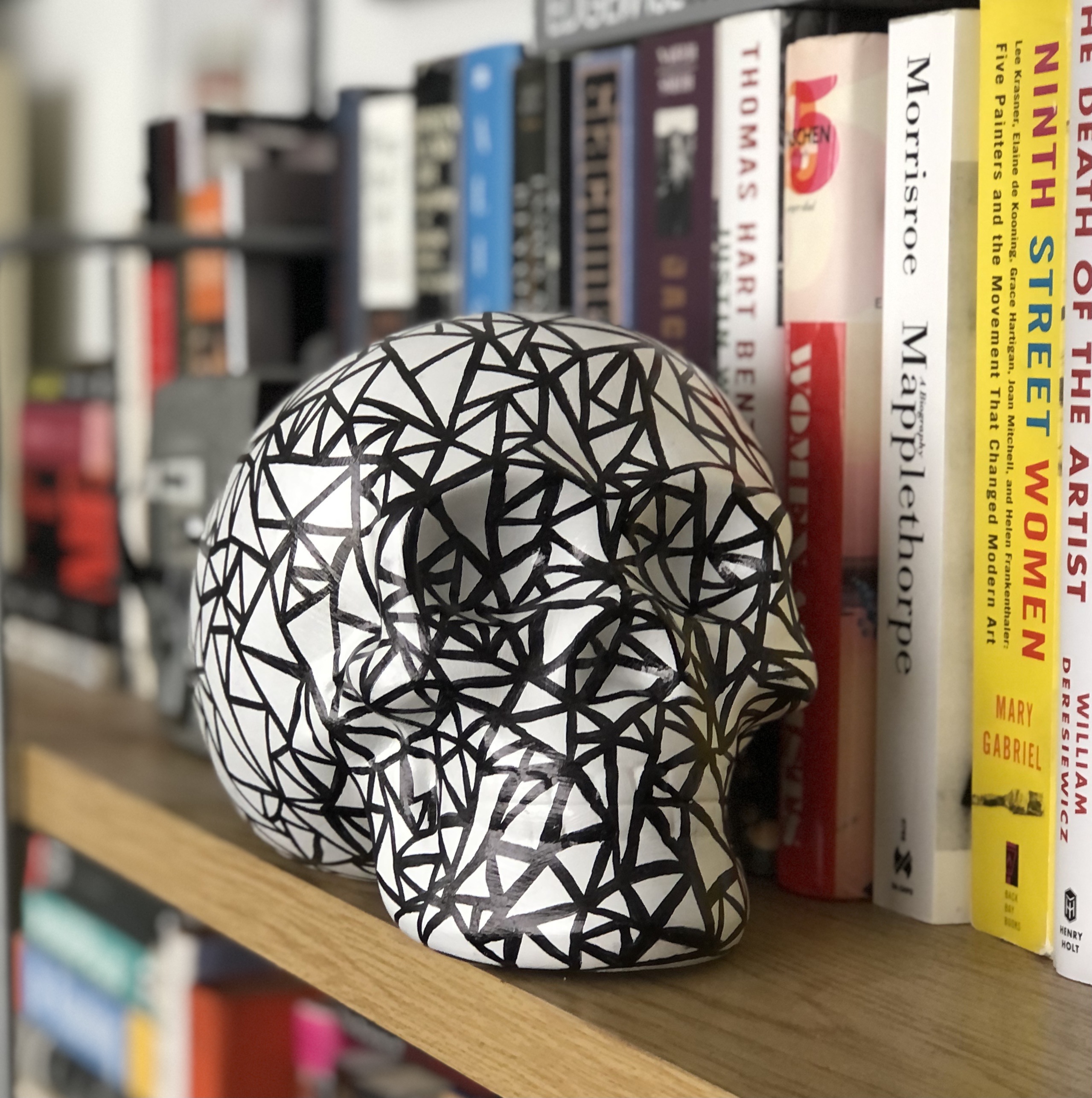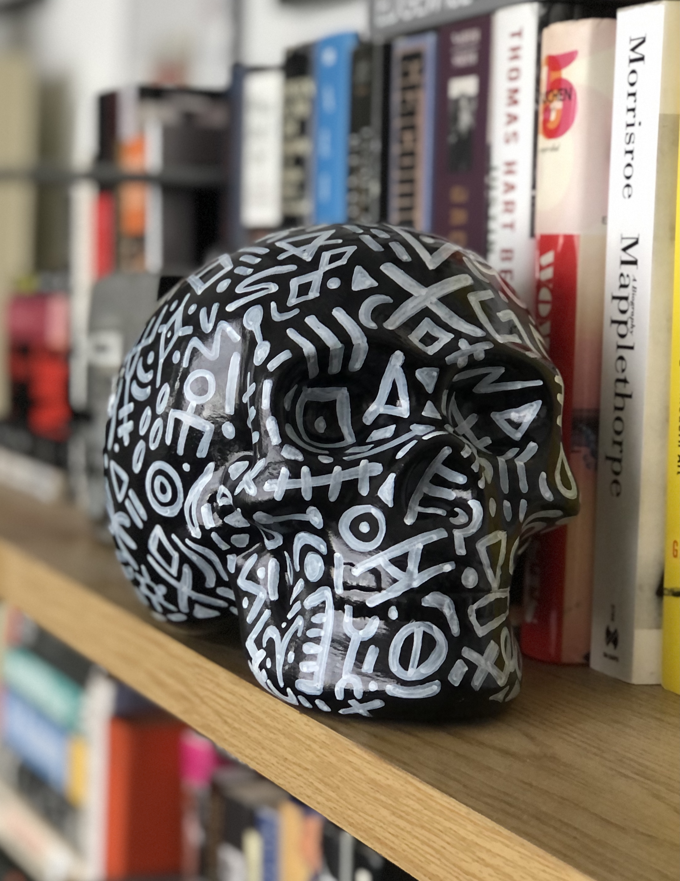I’m creating a series of hand-painted ceramic skulls that are inspired by geometric, esoteric and graffiti designs. Each original skull is painted by hand and signed on the bottom. Here are some examples with more to come. Free shipping domestically.
