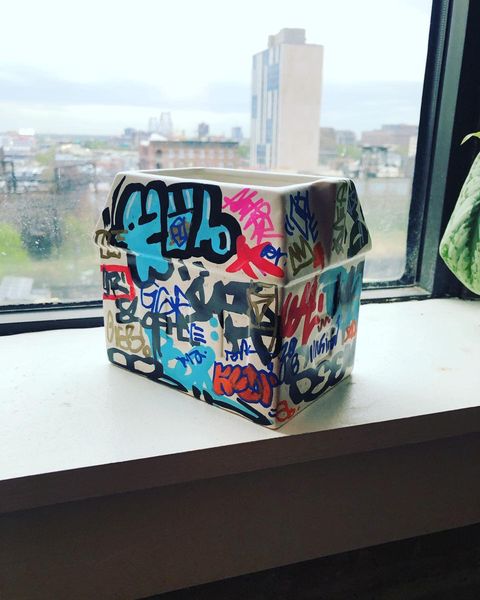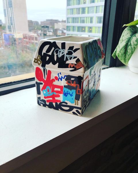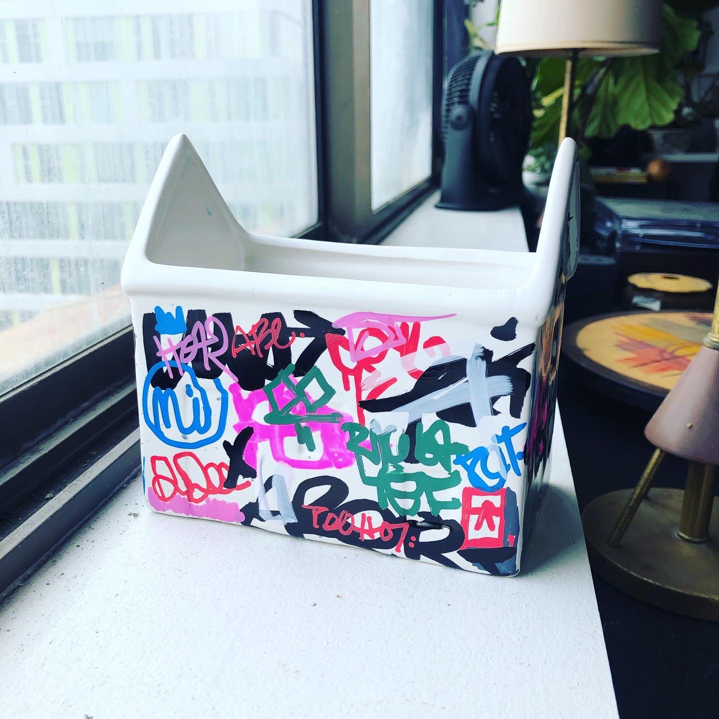 My hand-painted graffiti house planters are almost sold out. They are each painted by hand and, yes, they include a drainage hole.