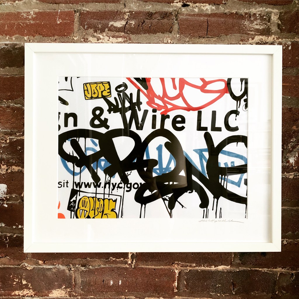 I’m still working on my graffiti-inspired series of paintings on paper. I collect images of graffiti on street signs in every city I visit and then use them as a basis for these paintings, sometimes changing them or combining different references.