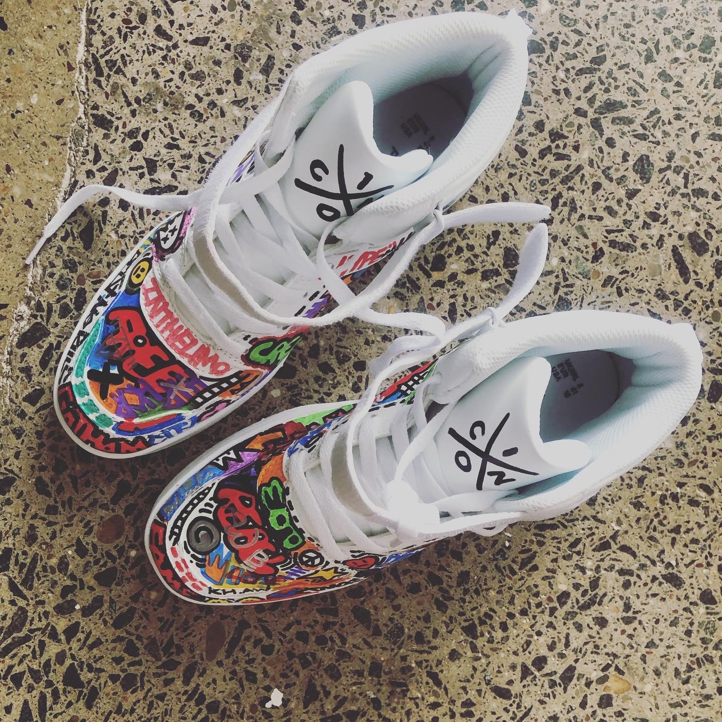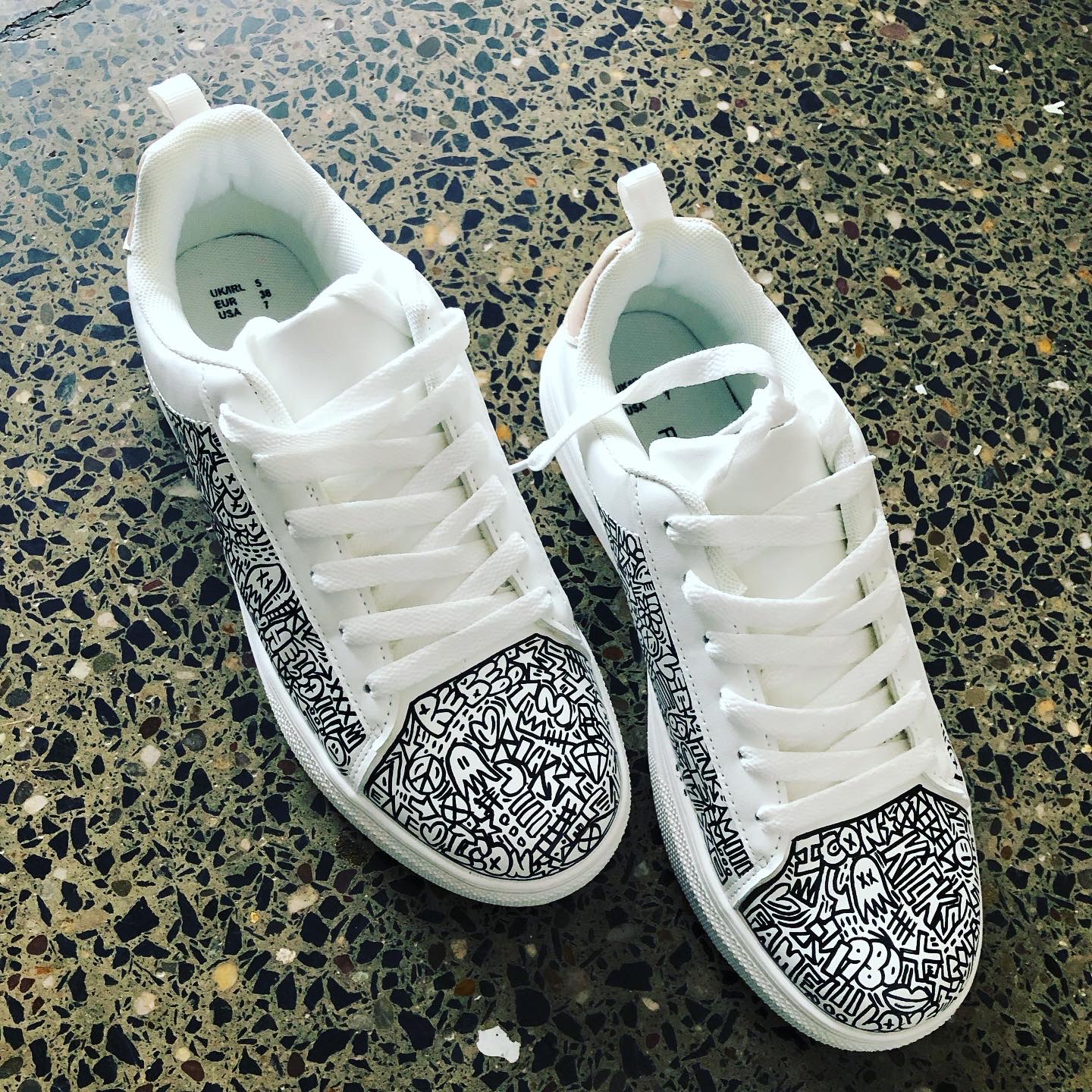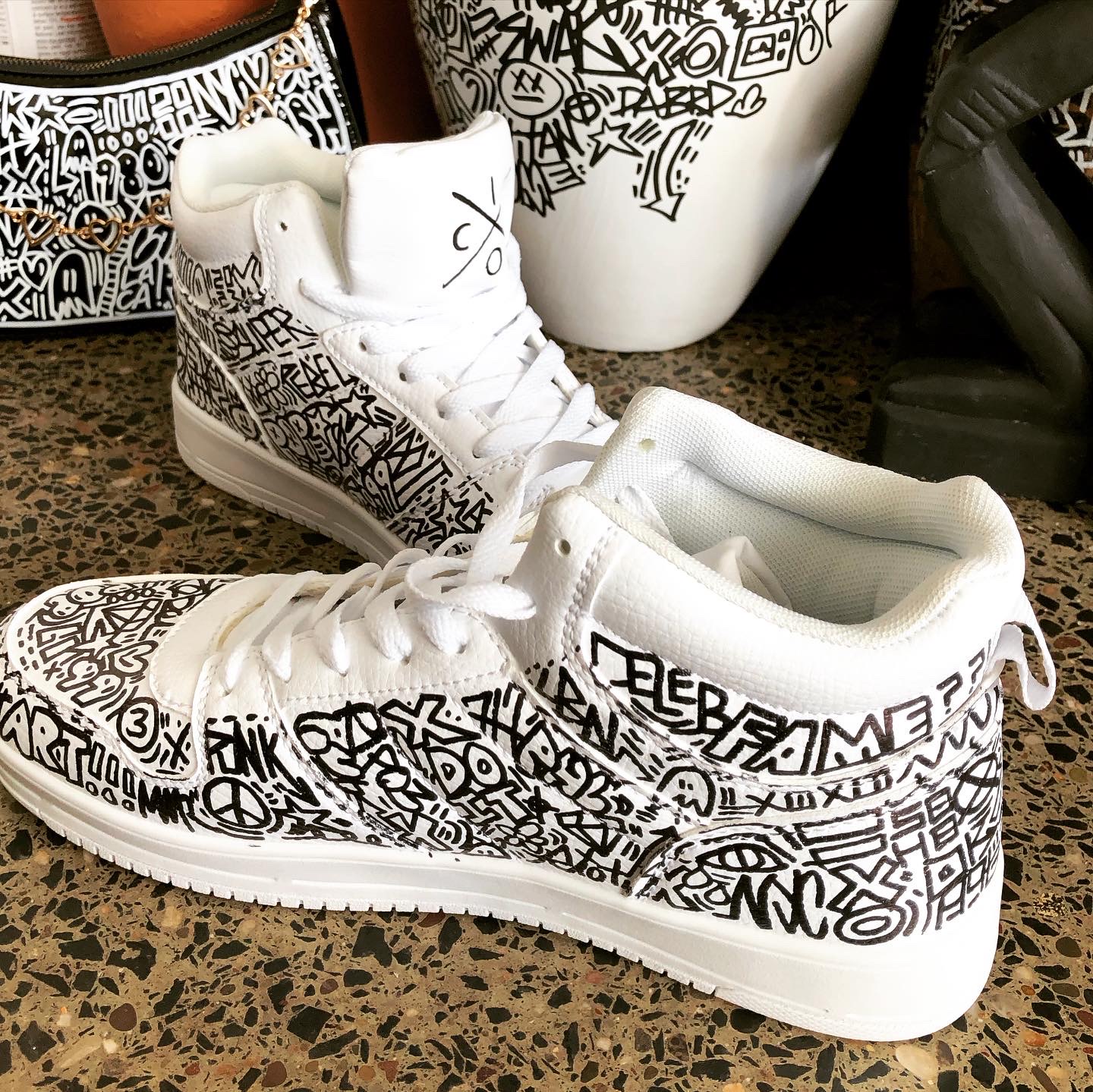 In addition to bags, I’m also painting custom sneakers for clients. The first few kicks I created just for me have inspired art collectors and sneakerheads alike to send me their favorite styles for a custom treatment.