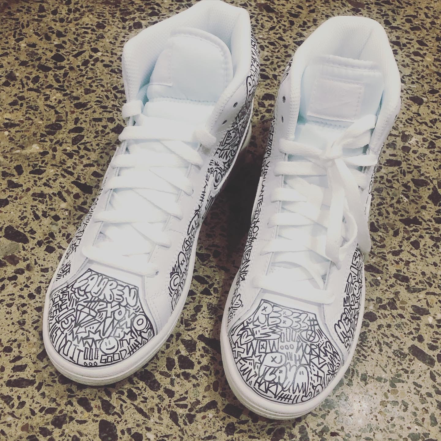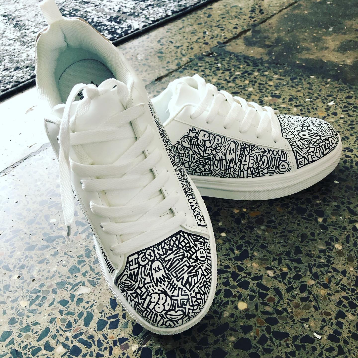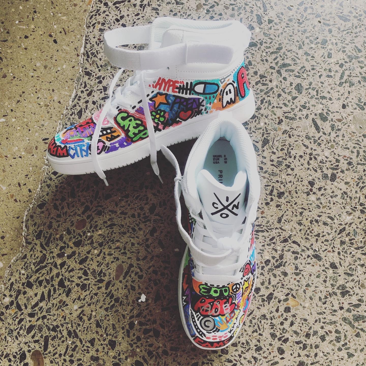 In addition to bags, I’m also painting custom sneakers for clients. The first few kicks I created just for me have inspired art collectors and sneakerheads alike to send me their favorite styles for a custom treatment.