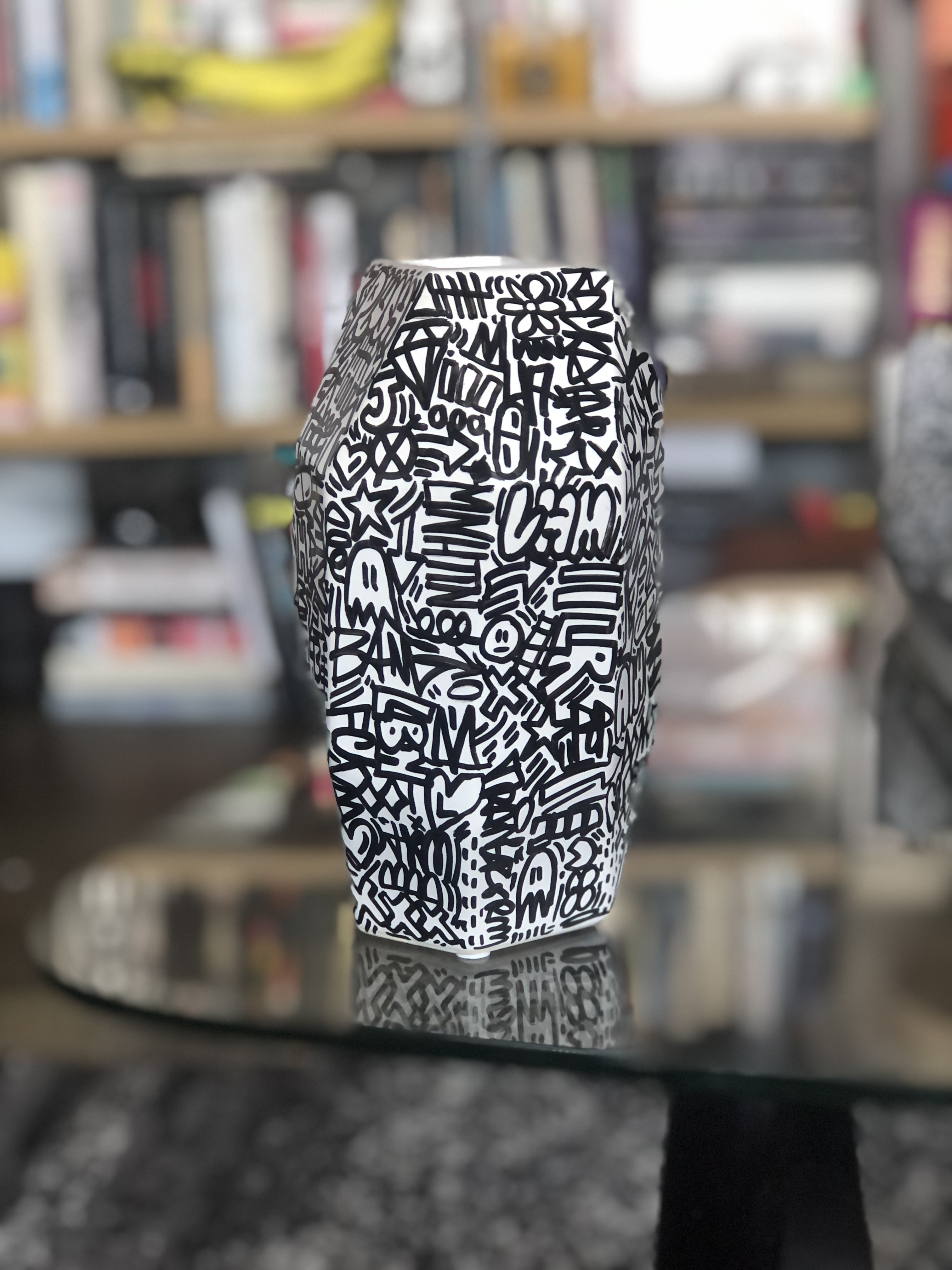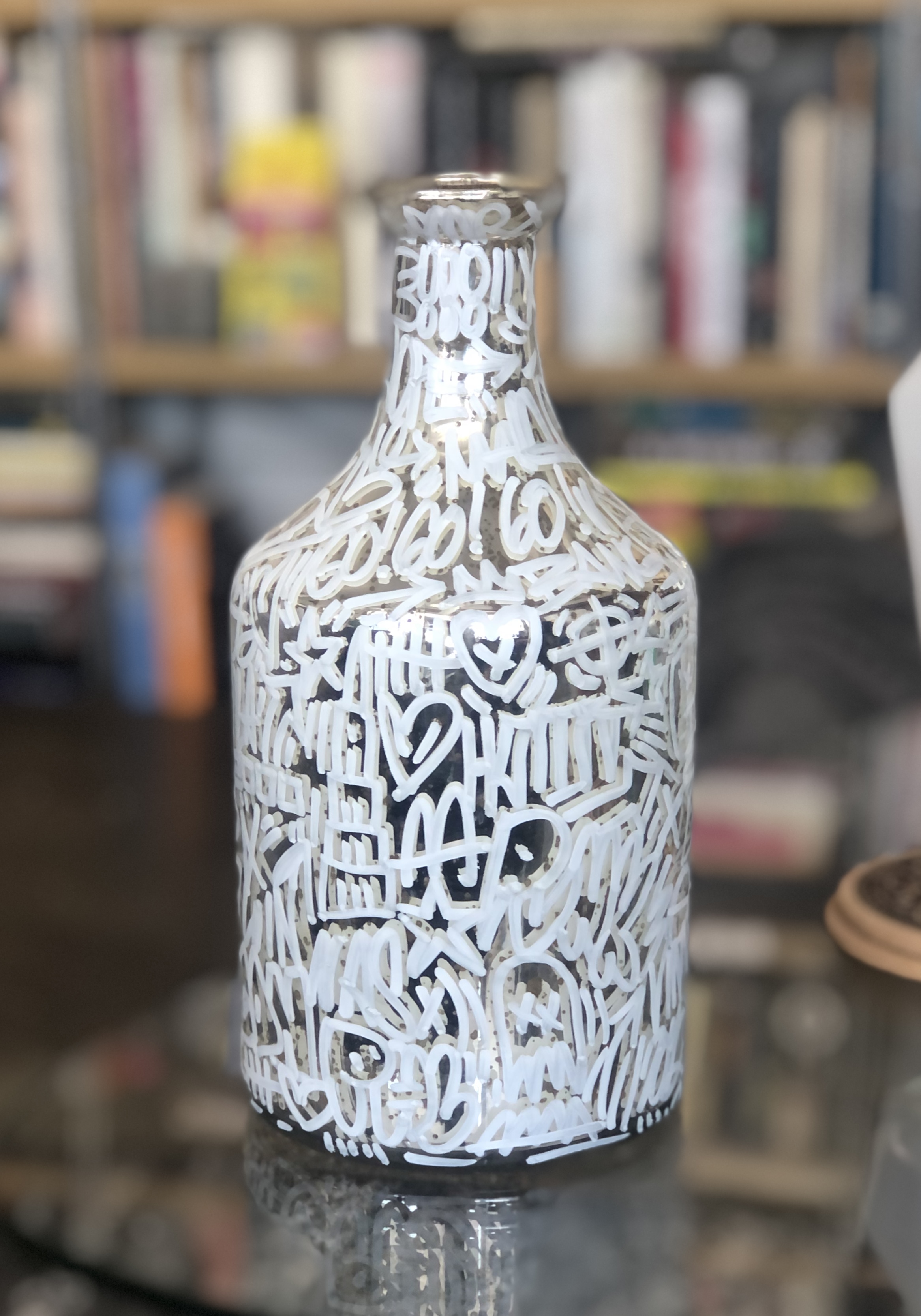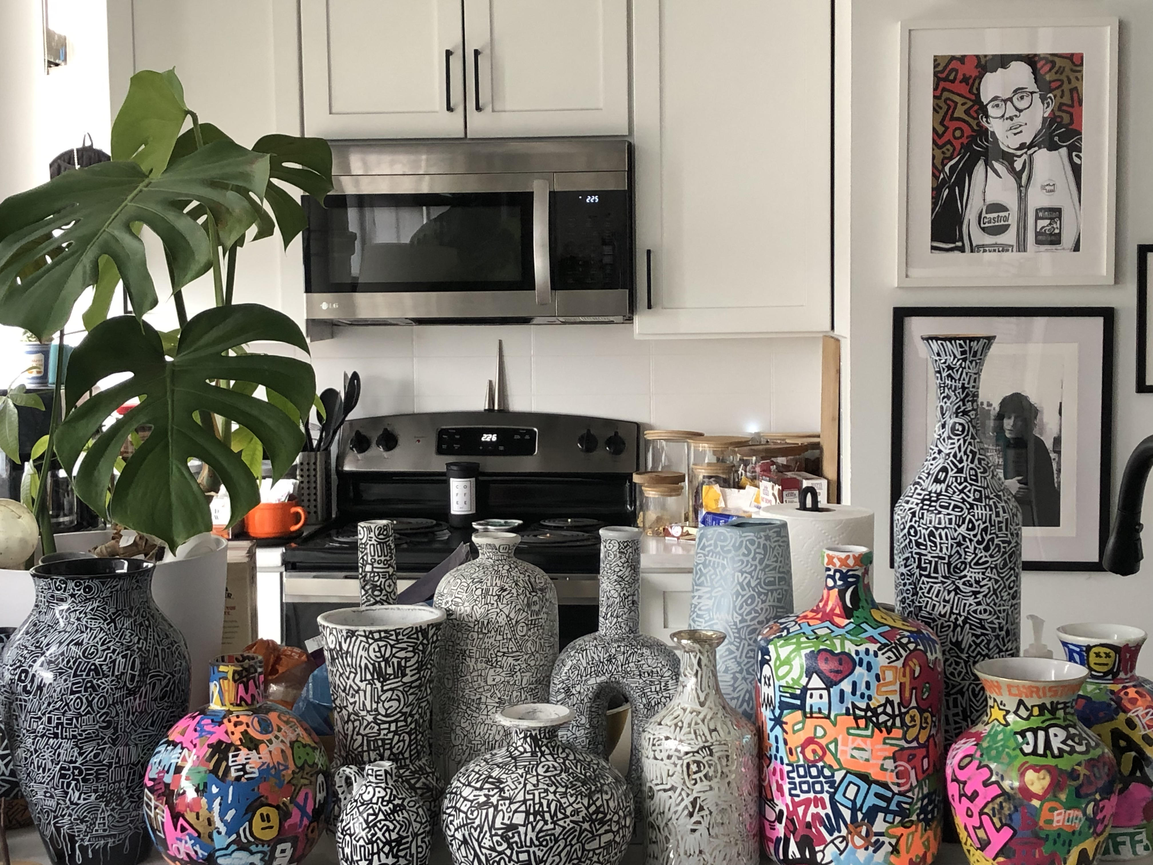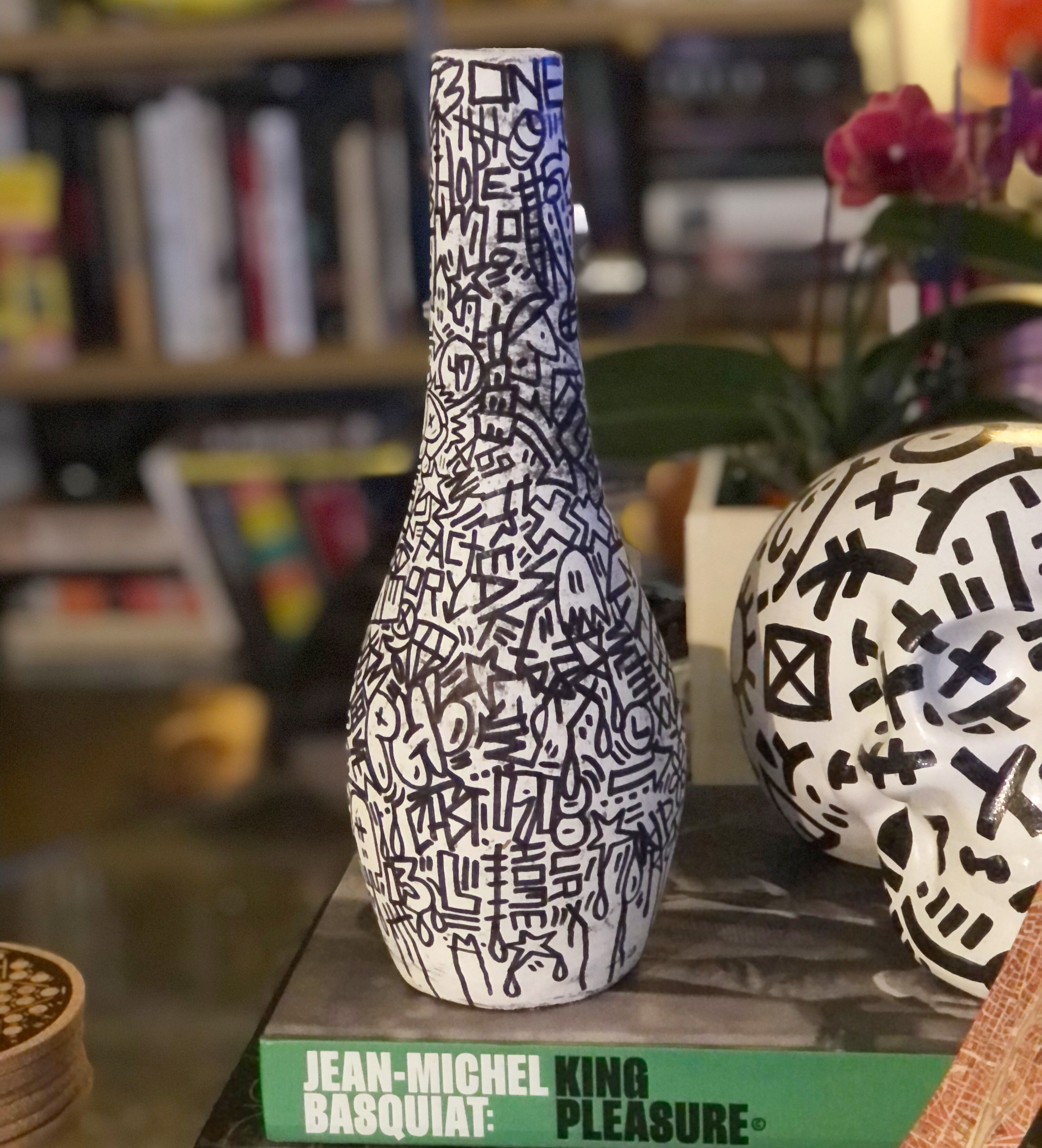I’m particularly excited about finding and painting antique-style porcelain and ceramic vessels (like the urns and tea pots from China), ones with intricate patterns and even religious iconography. Being able to apply contemporary art on these has been an important part of the series. I hope to showcase more of these in their entirety later this year.