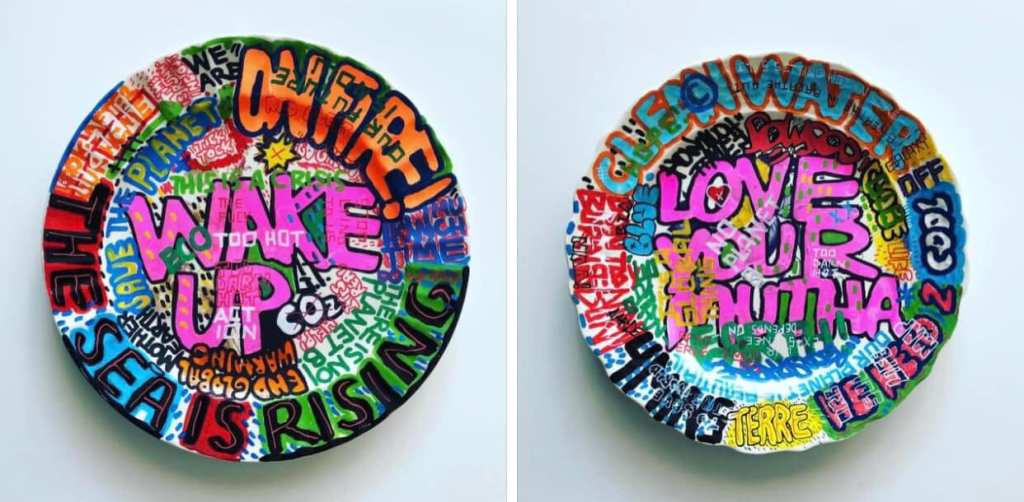 I recently sold two works at the Off the Wall Gallery at Dirty Franks in Philadelphia. The focus of the exhibition was on global warming and climate change. I decided to paint on upcycled plates more sustainably compared to creating new materials.