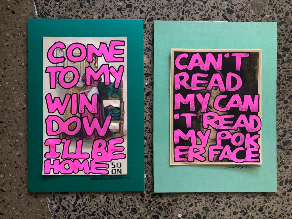 RECYCLING July 12, 2023 • NatalieHopeMcDonald I started painting word art on old book pages and prints. Here are the first two. Share this: Click to share on X (Opens in new window) X Click to share on Facebook (Opens in new window) Facebook Like Loading... Related