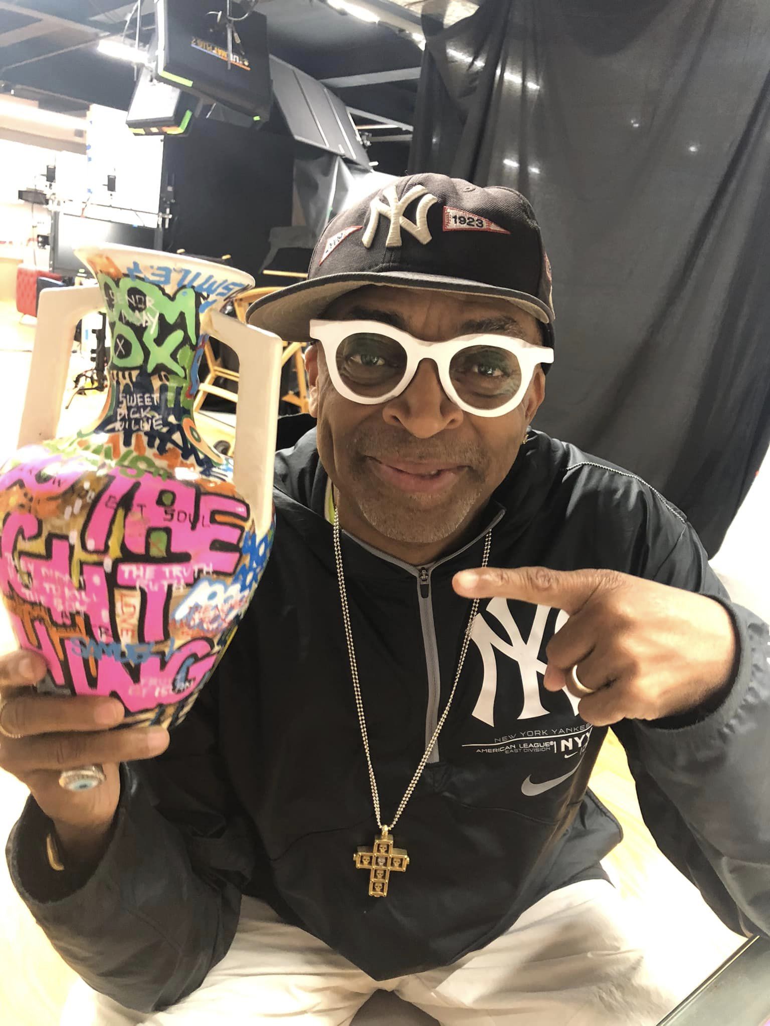 I had the opportunity to visit filmmaker Spike Lee at his 40 Acres and a Mule Filmworks in Brooklyn to deliver a piece he purchased. The vessel is an homage to his film Do the Right Thing. We had a great time and he generously gifted me some epic swag, including a signed DTRT DVD.