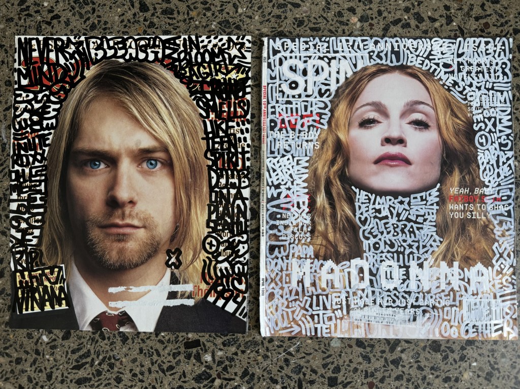I’m painting on vintage magazine covers and sheets to create a more sustainable form of contemporary art. You can pick up a few of the original pieces at James Oliver Gallery in Philadelphia.