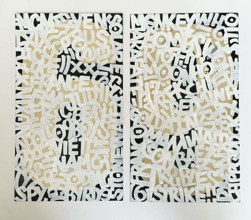I’m painting on plates and many more materials that I salvage from flea markets and vintage stores. My work is driven by popular culture and history.