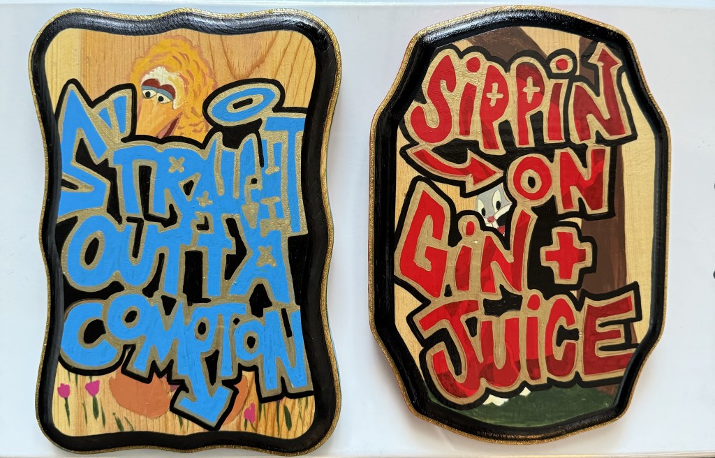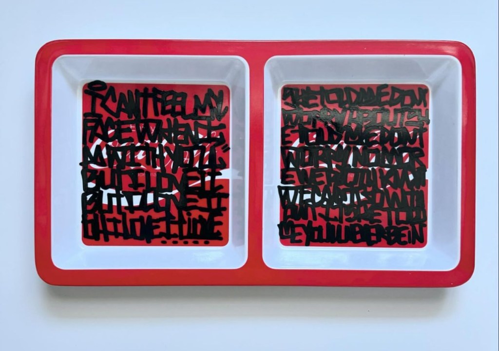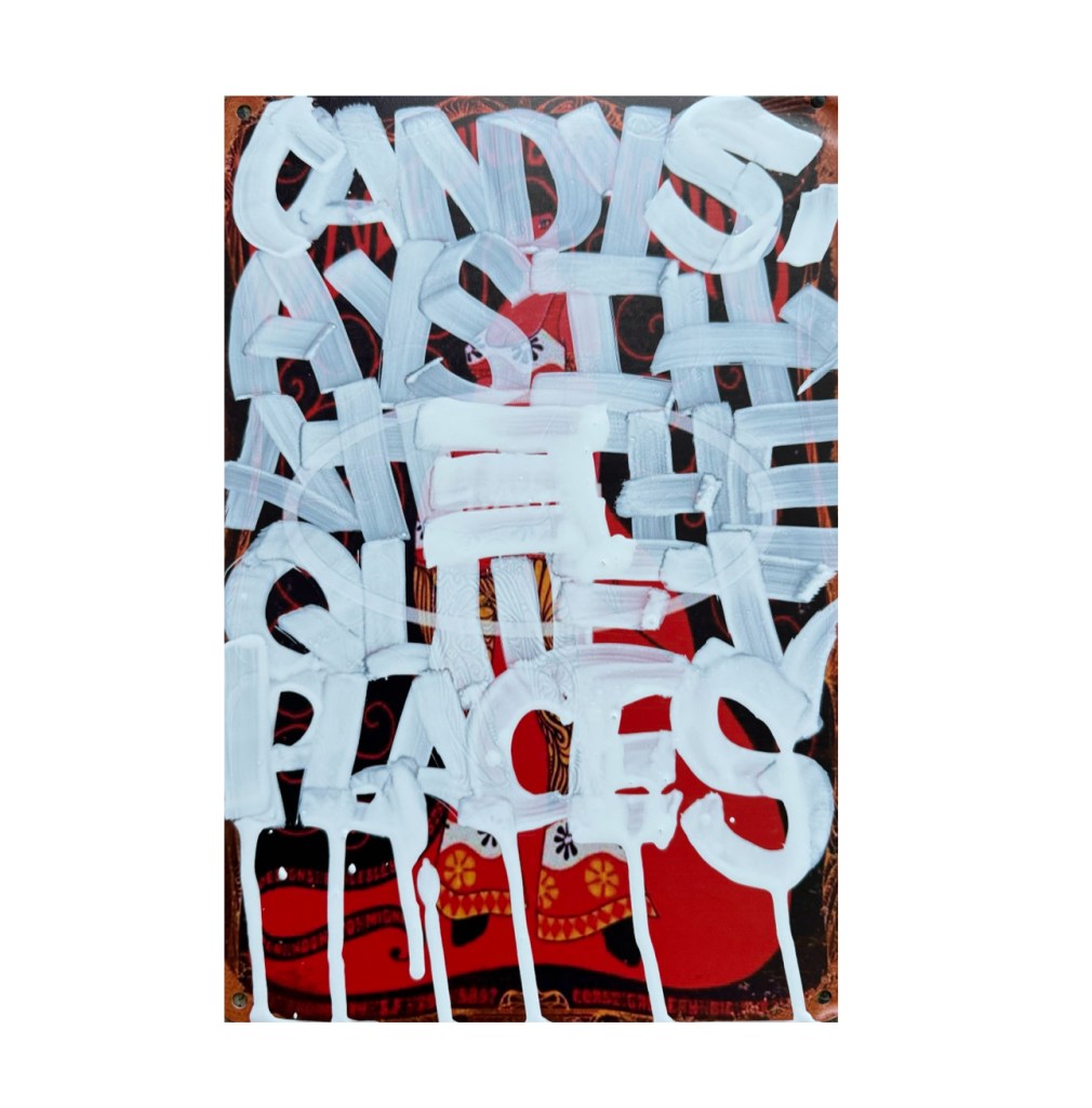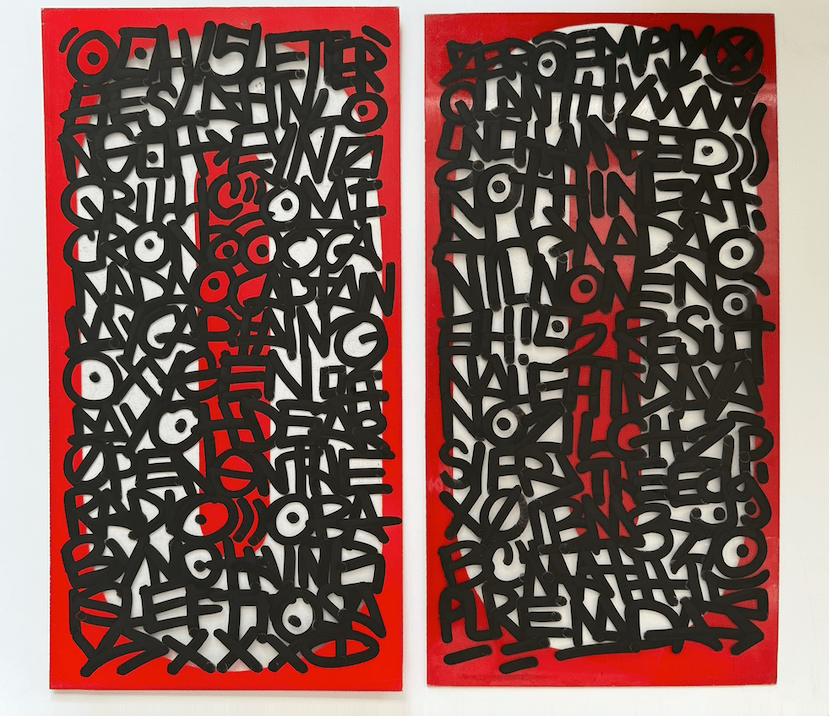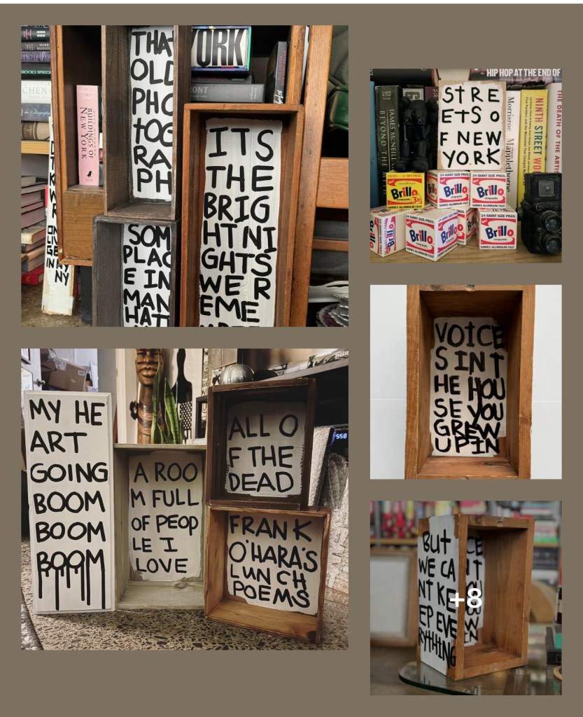 I’m creating art on a range of materials, including reclaimed wood, skate decks, vessels and signs. I love the idea of finding existing materials and making something new in a more sustainable way.