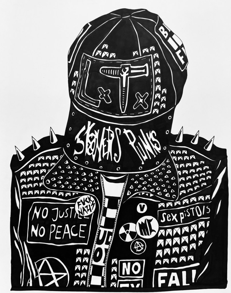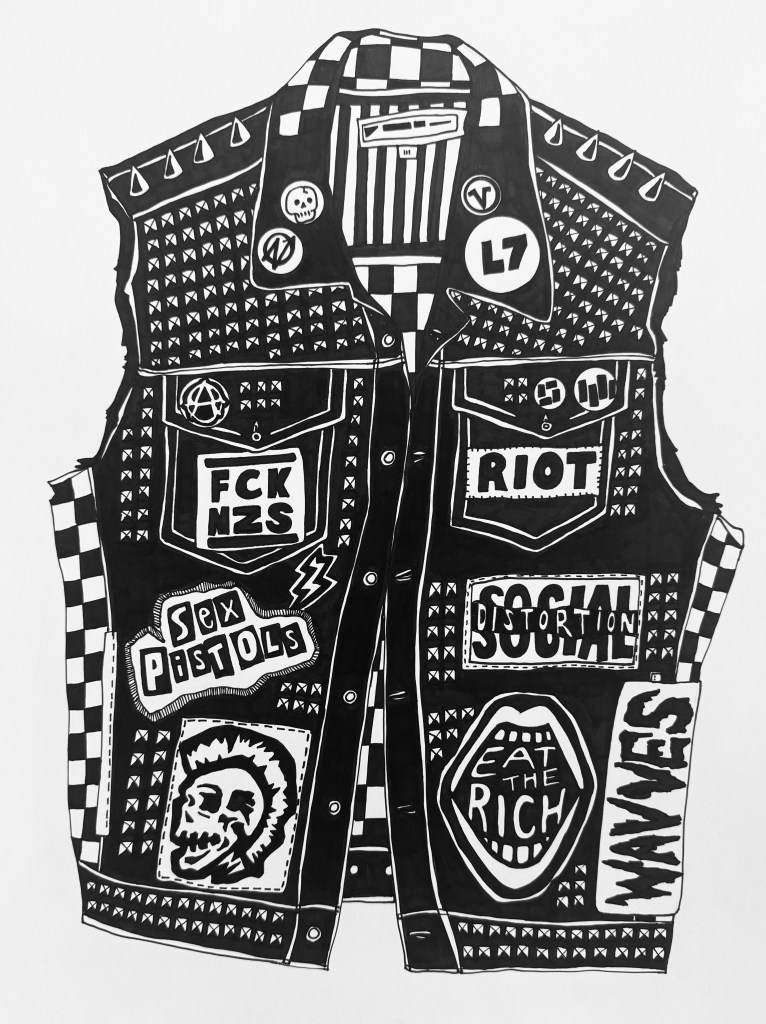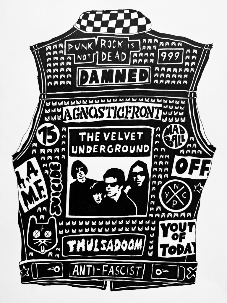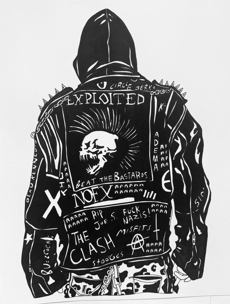 The series captures moments in time and focuses heavily on the way people communicate their tastes and politics on material culture and through personal expression. The fronts and backs of punk rock vests, for example, make up a huge partition of the series, along with portraits of people with obscured identities. These works are meant to be stark, highly detailed, very graphic and a tribute to anti-fascist ideology from the 1970s onward.