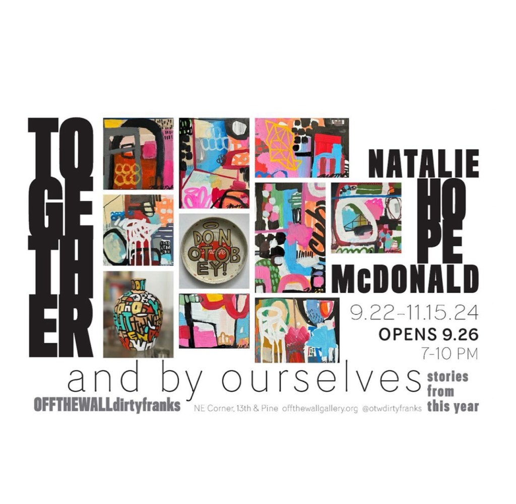 I enjoyed a solo exhibition recently at Off the Wall Gallery at Dirty Frank’s. The exhibition, which combined small paintings and other mixed media pieces, was called Together & By Ourselves.