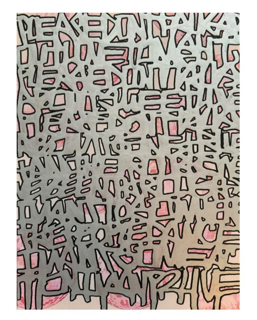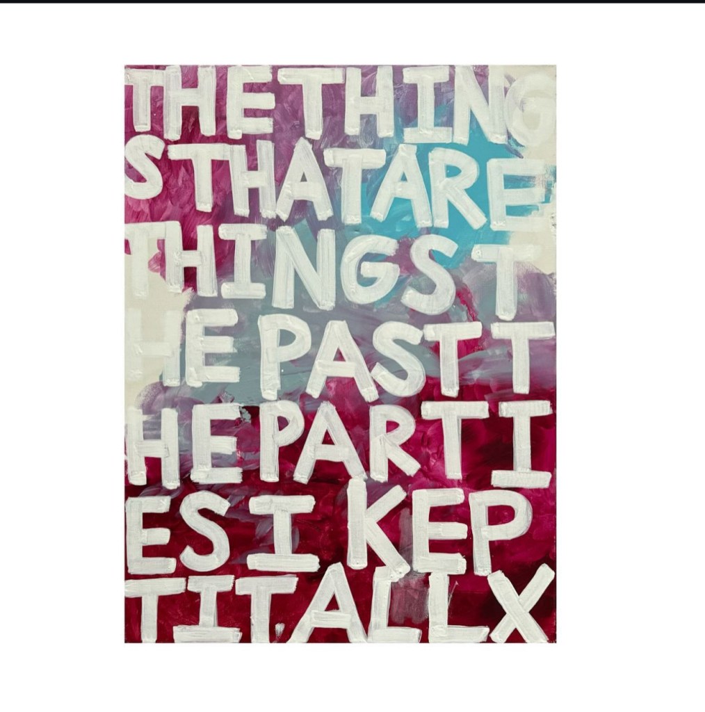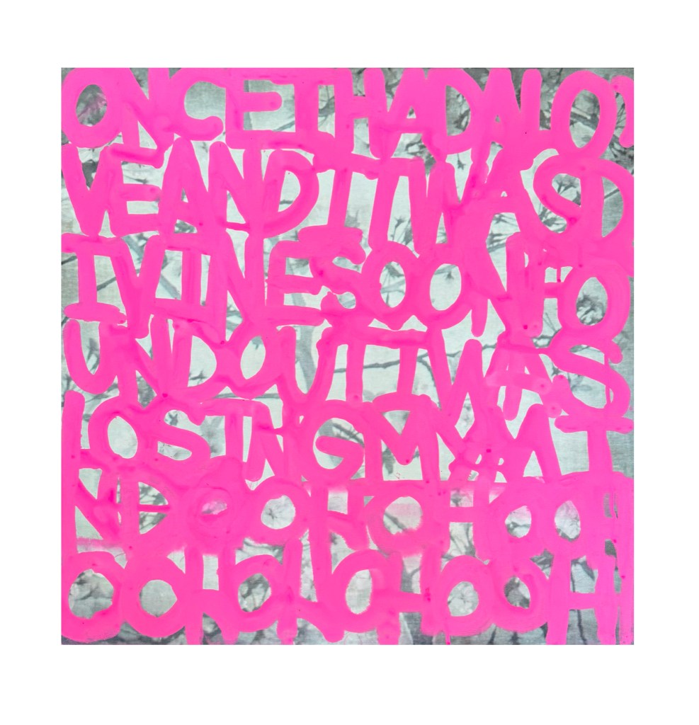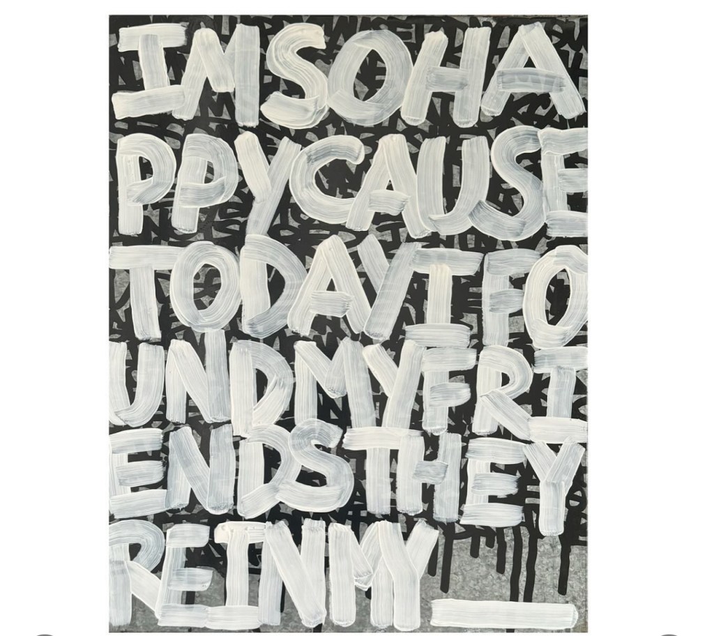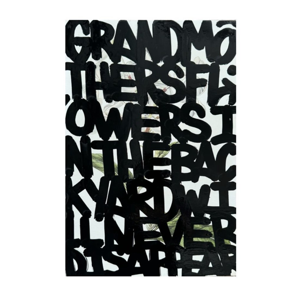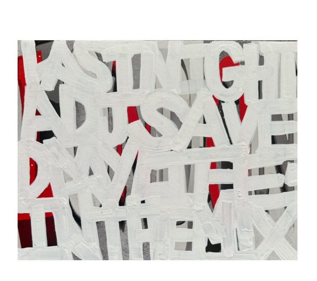 I’ve been working on more abstract word paintings that list names and also poems. I’m interested in exploring how letters and words (even graffiti) can become their own forms of art in paintings on traditional mediums like canvas.