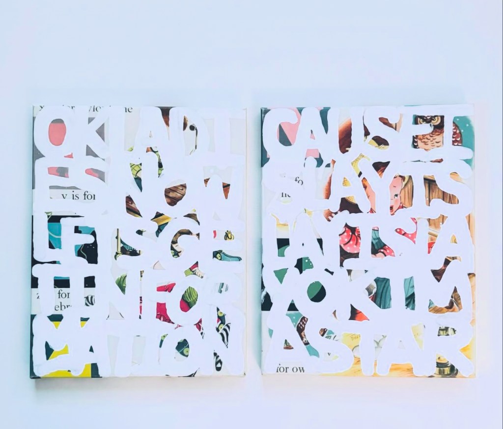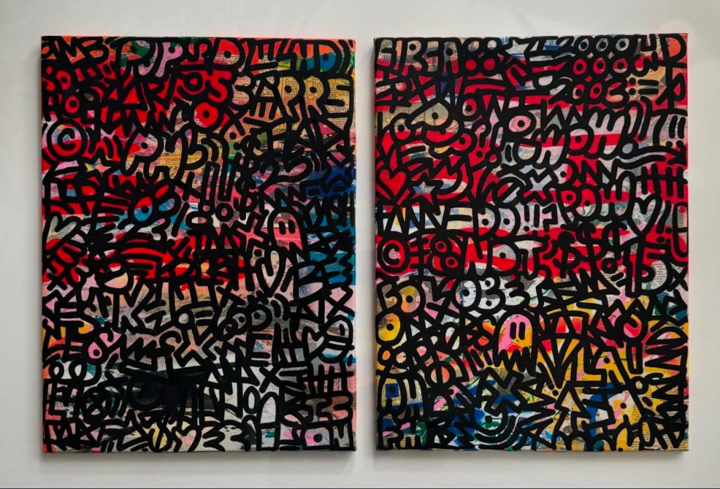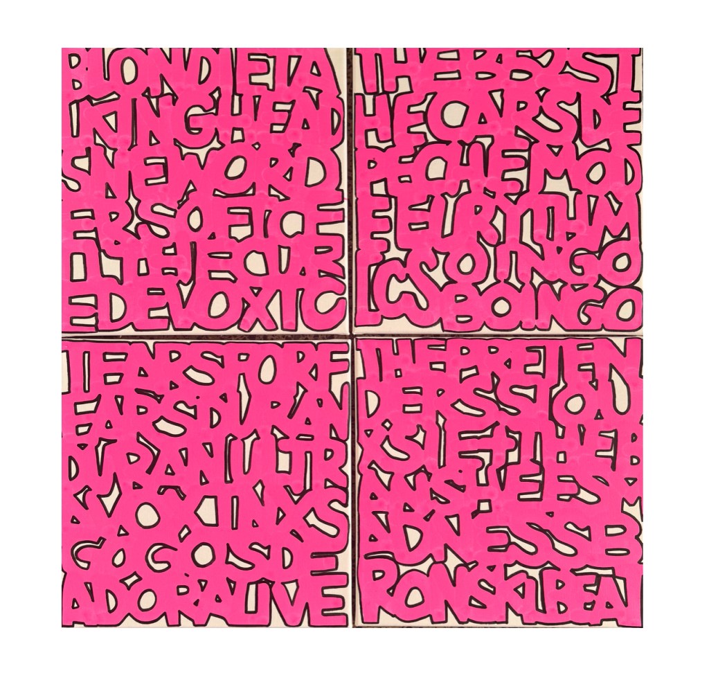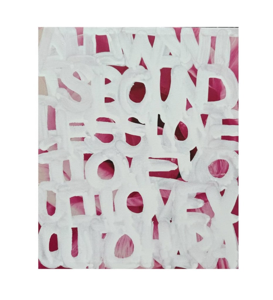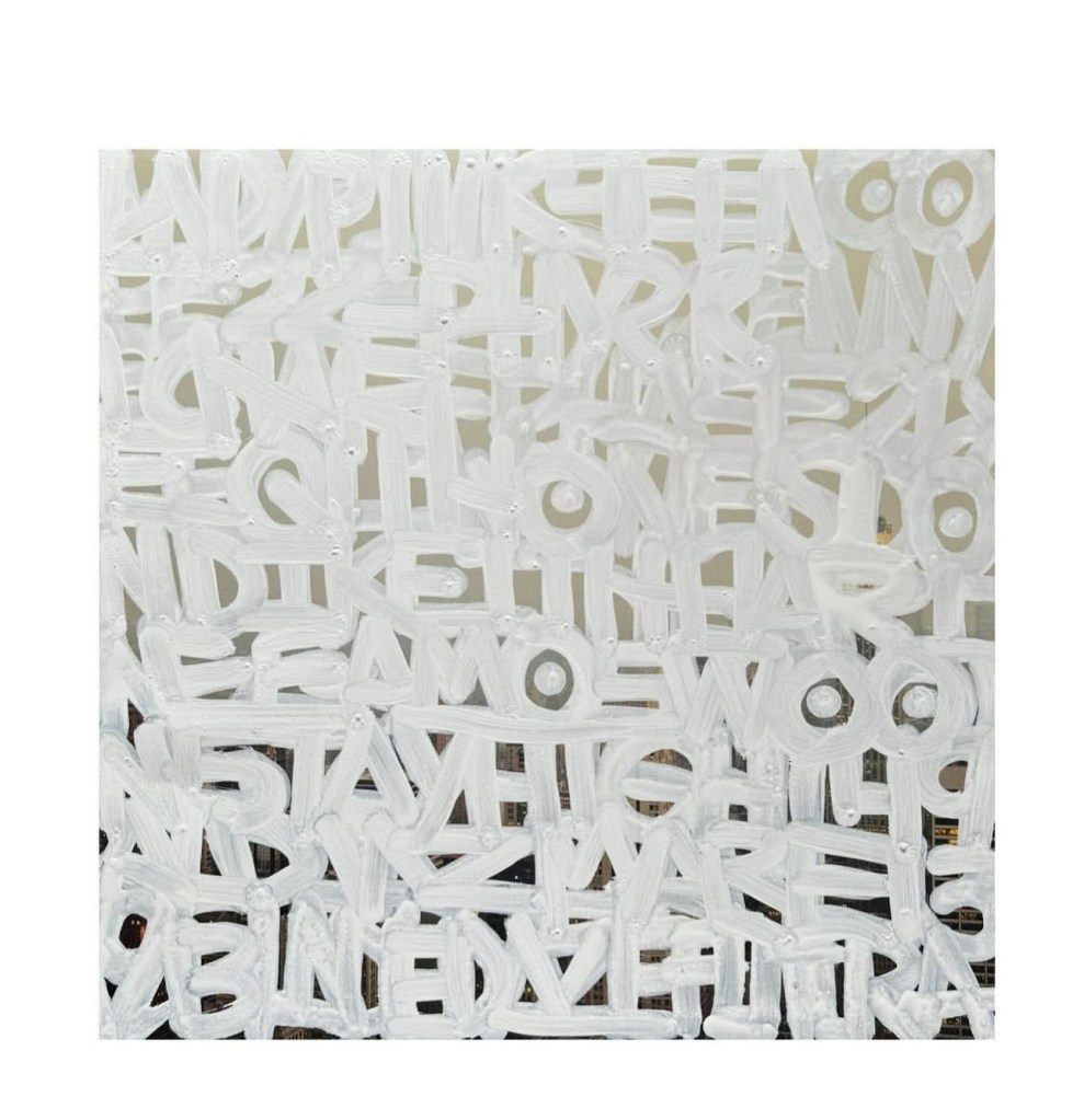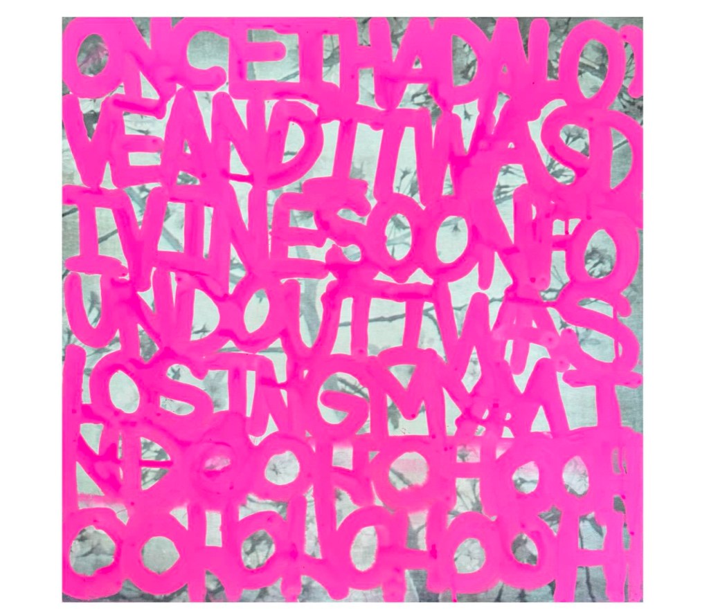 I’ve been working on more abstract word paintings that list names and also poems. I’m interested in exploring how letters and words (even graffiti) can become their own forms of art in paintings on traditional mediums like canvas.